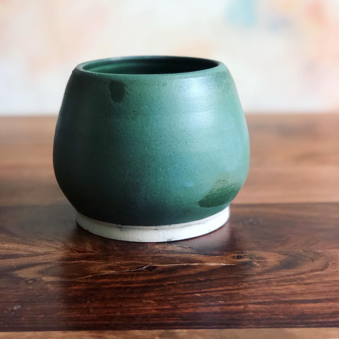 This piece has been wheelthrown in a smooth white clay and glazed in a beautiful teal green, that demonstrates lots of variance, splashes and pattern in the finished piece.